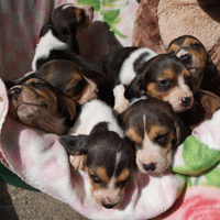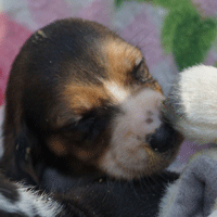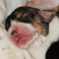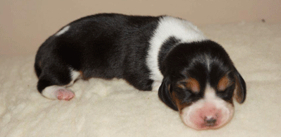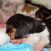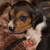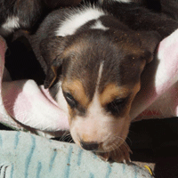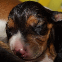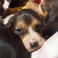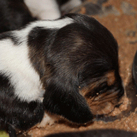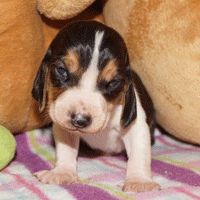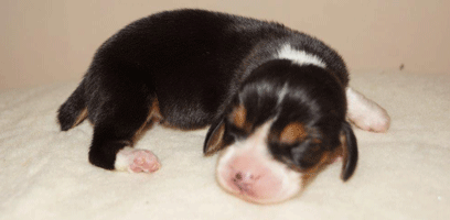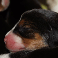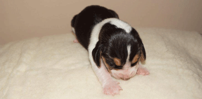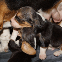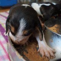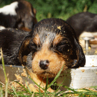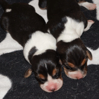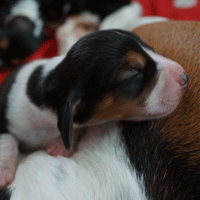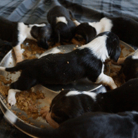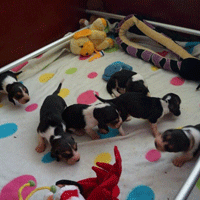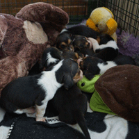 Vandaag durfde de pups al door het hok rond te kruipen, erg leuk om te zien,