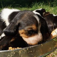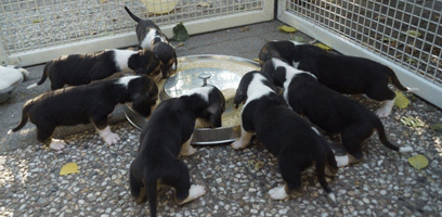 De puppy's konden lekker picknicken buiten.
