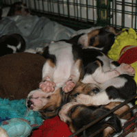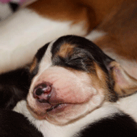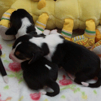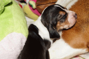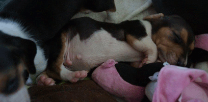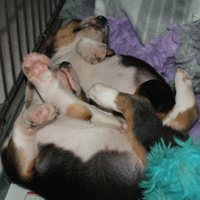 En toen de pups weer binnen waren vielen ze direct in slaap.
