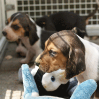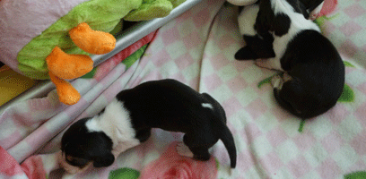 Die hebben de pups meteen uit geprobeerd.
