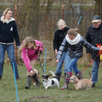 Maar bij de worstenrace staat ze iedere keer vooraan. de kinderen zijn allemaal heel lief voor de honden,