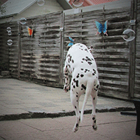 Bellenblaas vindt Angel geweldig. Ze maakt de gekste capriolen om de bellen te pakken.