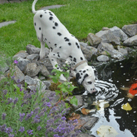 Ook zijn we op bezoek geweest bij Devil (Sir Devil of the Three Turnips). Daar ben ik in de vijver met koikarpers gesprongen, oeps J Gelukkig vond niemand het erg, en de vissen vonden mij wel leuk want die kwamen iedere keer kijken als ik water ging drinken.