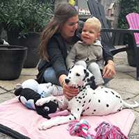 Met z'n vieren een terrasje pakken, vind ik ook erg leuk. Iedereen vind me dan zo schattig en wil dan met me knuffelen. Ze vragen dan ook altijd of Guus mijn mamma is. Grappig hè?