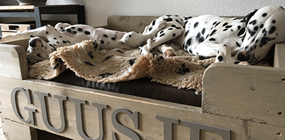 Ik ben Meike (Lady My Marjory) en ik woon sinds 11 juni bij Jan en Margreet in Katwijk (Z-H). Mijn tante Guusje (Lady Gaily Girl) woont hier ook. Vanaf dag 1 voel ik mij hier al helemaal thuis. Tante Guus heeft een heerlijk hondenbed, waar we samen op spelen en slapen. 's Nachts slaap ik in de bench, en dat gaat hartstikke goed. Ik ben ook al een paar keer naar puppycursus geweest. Het leukst vind ik, dat je na de les lekker mag ravotten met de andere puppy's.