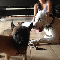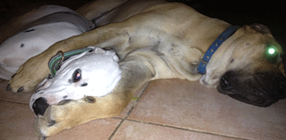 Bij mijn ouders zijn er drie hondjes, 2 Teckels en 1 Fila Brazileira.