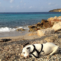 Oxley woont in Curaçao bij Quint & Stephanie.