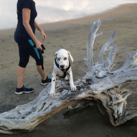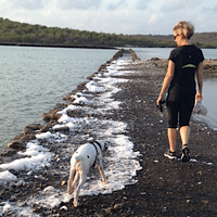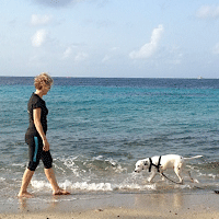 Terwijl wij (Anita en Hans) met Tyler en Quartz op het strand liepen,