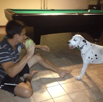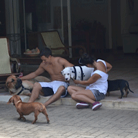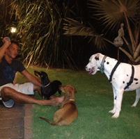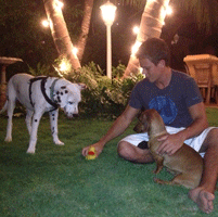 om met hun hondjes te spelen dan komt hij doodmoe thuis.
