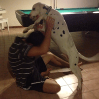 hij wordt ook echt blij als ie met andere honden is.