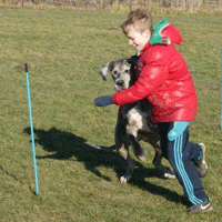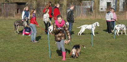 Maar bij de worstenrace staat ze iedere keer vooraan. de kinderen zijn allemaal heel lief voor de honden,